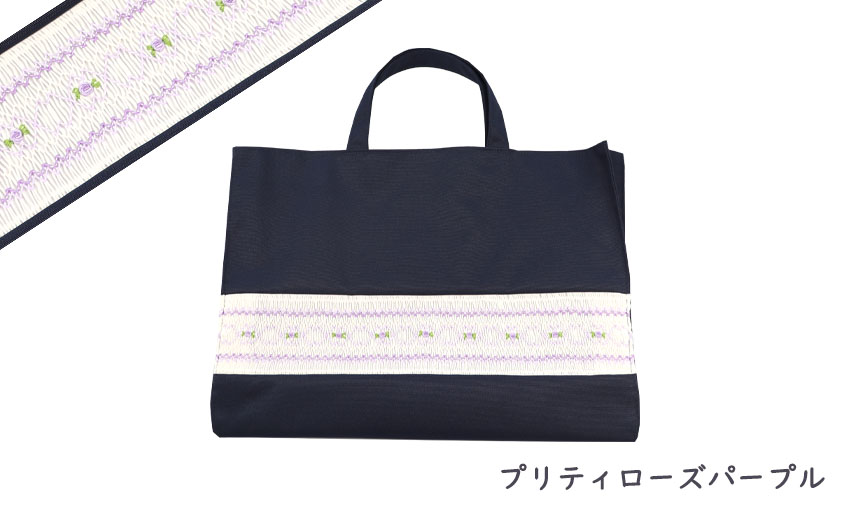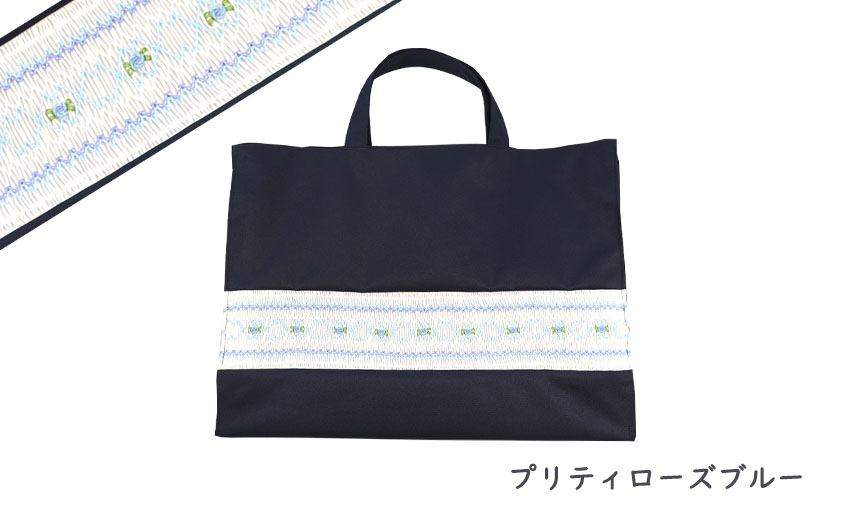ネット限定販売のスモッキング刺繍入りレッスンバッグです。