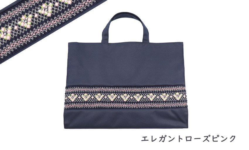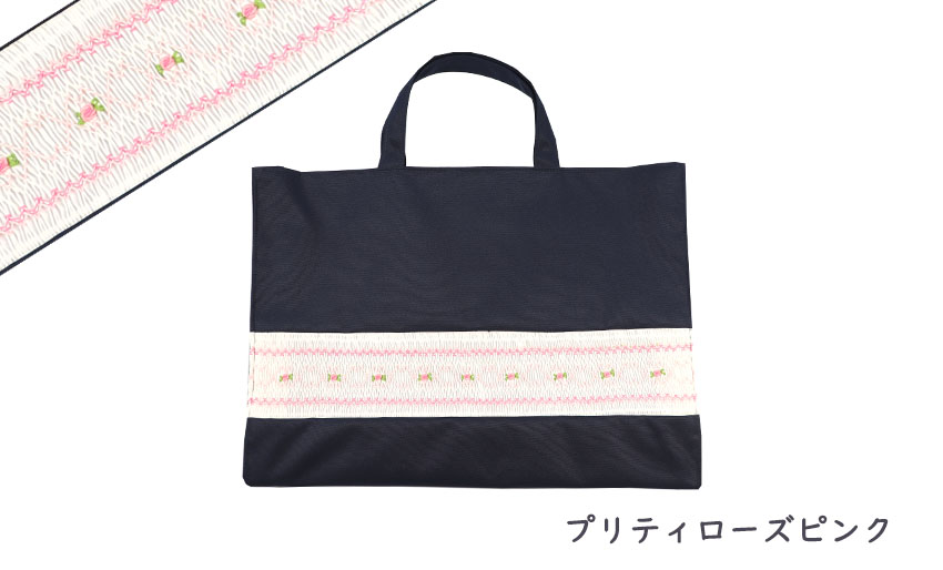 美しさと温もりを感じるスモッキング刺繍入りのレッスンバッグです。