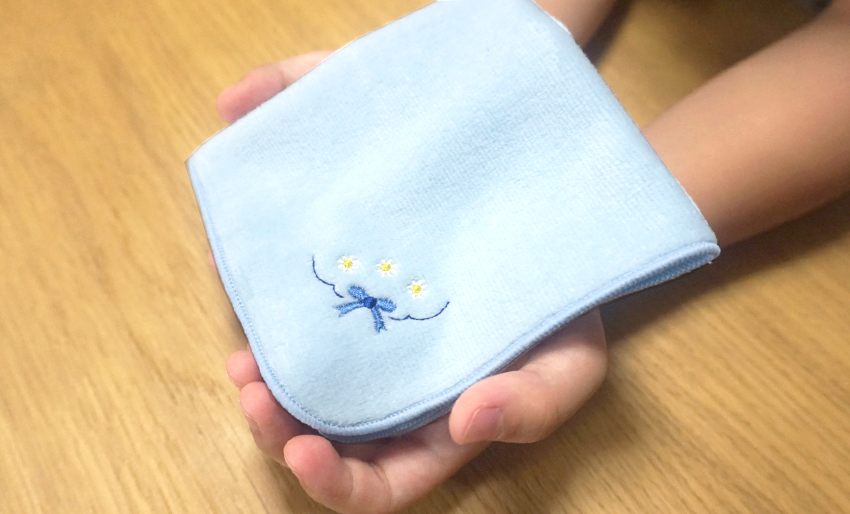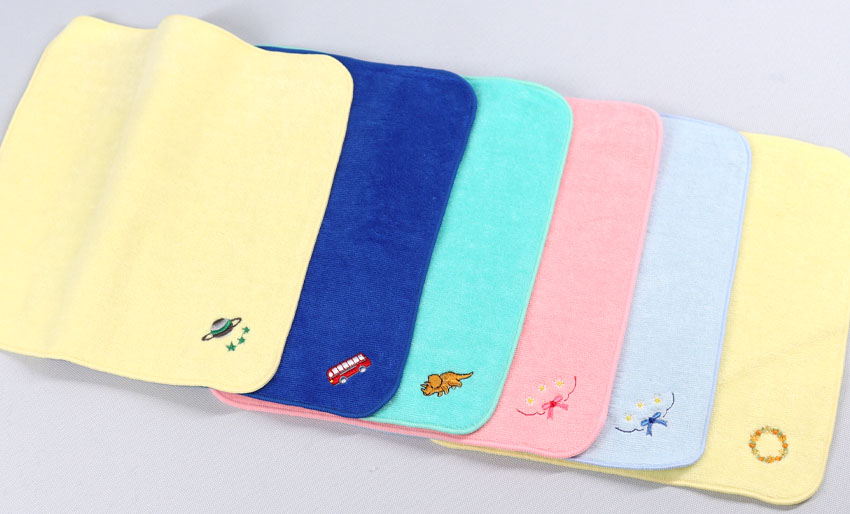 タオルの産地で有名な四国今治製のカラータオルハンカチに可愛いらしい刺繍をあしらいました。