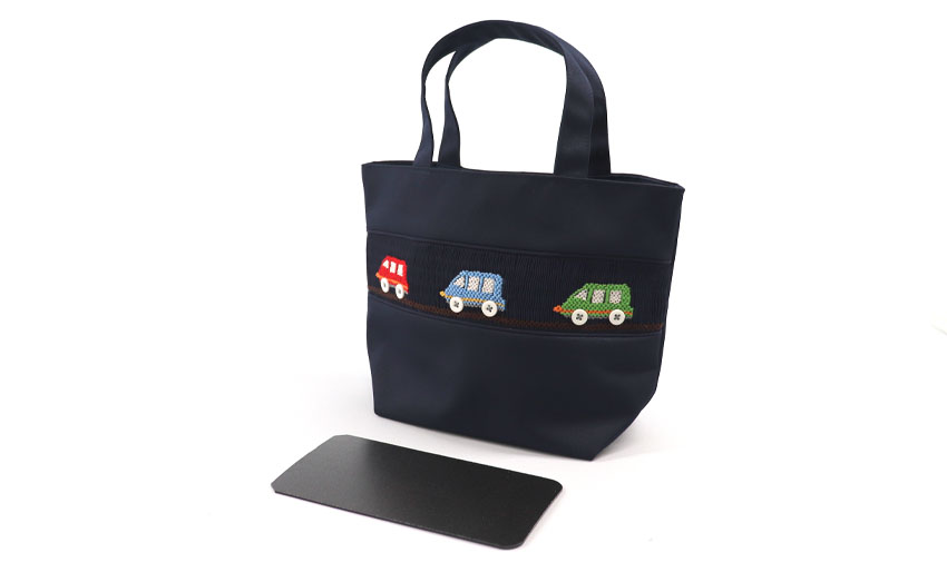 | 素材 | スモッキング刺しゅうミニトートバッグ: 表地 弱撥水加工ポリエステル100%、裏地 ナイロン100% レッスンバッグ:弱撥水加工ポリエステル100% シューズバッグ:弱撥水加工ポリエステル100% タオルハンカチ:綿100% ミニティッシュケース:綿100% |